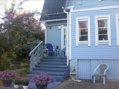 Talo maalaattiin perustuksista harjaan. Samalla tehtiin ulkovuori uusiksi ja maalattiin koko talo. Vanha peltikatto pinnoitettiin. Kate maalattu käsityönä panssarimaalilla. Projekti toteutettiin kesällä 2009. |